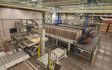 Um diese Prozesse in der Produktionsstätte in Lyngdal positiv zu gestalten und gleichzeitig den betrieblichen Materialfluss zu optimieren, wurde in neue Gebäude investiert. Gleichzeitig war es notwendig, eine neue, hochflexible Kurztakt-Durchlaufpressenanlage als Herzstück der Plattenproduktion zu installieren. Hier kommt das Freudenstädter Unternehmen Robert Bürkle GmbH als Systemspezialist für Pressentechnik ins Spiel.