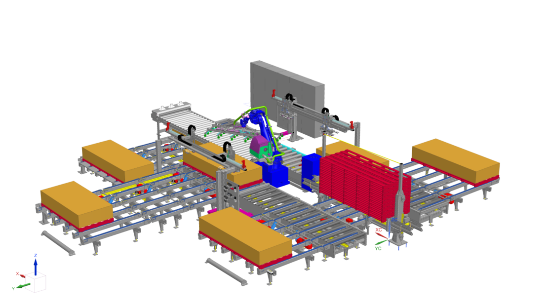 A few clicks, then the robot picks up one of the facade elements that has left the coating system, turns it and transports it towards the destacker. An error message then appears indicating that the holding force has been exceeded. In reality, the panel weighing around 80 kilograms would now fall to the floor unchecked. However, Marian Michels, programmer at Robert Bürkle GmbH, has recently been able to investigate and rectify such errors on a digital model: A digital twin supports him and his colleagues in development and design. The basis is the CAD model of the system as a “ Single Source of Truth”, as the basis for all subsequent steps, as Jürgen Müller, Head of Mechanical Design at Bürkle, explains.