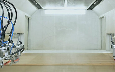 Die Analyse der zu verwendenden Oberflächenmaterialien und deren Weiterverarbeitung sind für das EWI auch aus einem anderen Grund wichtig: Die Grundstücks- und Gebäudekosten in der Peripherie von New York City sind enorm hoch, der Platz ist also knapp und muss optimal genutzt werden. Auch Investitionen in den Maschinenpark müssen unter diesem Aspekt betrachtet werden. "Wir stellen viele Wand- und Deckenverkleidungen her, deren Oberflächen beschichtet werden müssen. Um einen Vorteil gegenüber unseren Mitbewerbern zu haben, müssen wir auch die Arbeitskosten senken. Wir mussten also eine Anlage finden, die kompakt ist und dennoch alle anderen Anforderungen mit hoher Flexibilität erfüllt", erklärt Sieling.