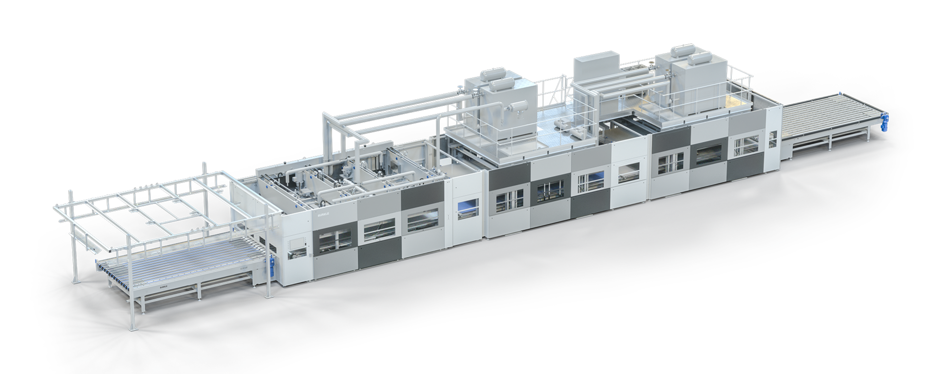 With the easy-LAM IFL, BÜRKLE developed a completely new way to laminate flat glass. Thanks to the successful inital type tested in cooperation with the Center for Construction Materials of the Technical University in Darmstadt, the autoclave-free laminating line officially maintains the highest quality standards for laminating laminated and laminated safety glass.