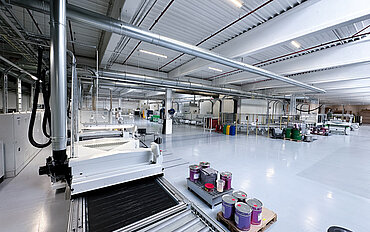 “Due to the many years of very successful cooperation, it was of course much easier for us to respond to the customer's wishes with the new system, because everyone literally knows what makes the other person tick and what is important. This is exactly when great things can happen, as is the case with the floor roller coating system, which was built in an L-shape to match the premises and has an impressive length of 202 meters,” reports Philipp Jauch, Head of Project Planning at Bürkle.