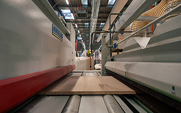 In particular, the longitudinal edge preparation of open-pored chipboard before lamination requires special sealing steps. The board edge is sanded after profiling, then compacted, cooled and finally wrapped with the decorative film as an L or U profile. The surface and edge can thus be laminated particularly economically in a single pass. The high-quality edge coating ensures that the finished panel has a very good visible edge.