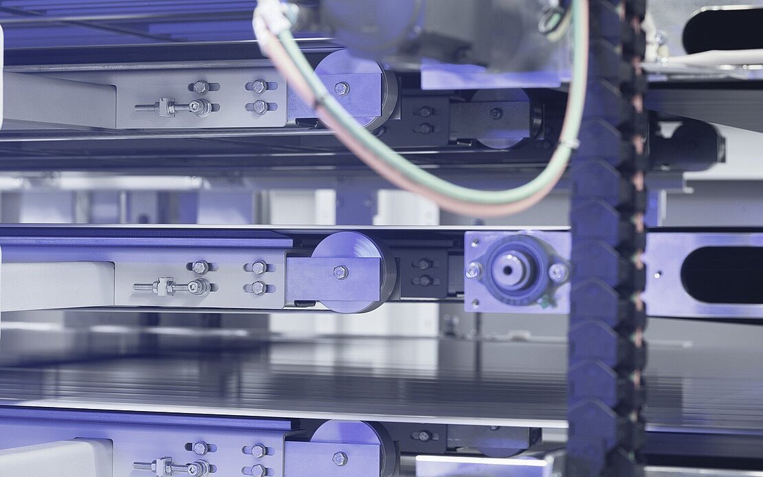 In the final stage, modules are again pressed and cooled to below 30 degrees Celsius. Controlled cooling helps to prevent warping and other types of damage that can affect performance and durability later on. In the Ypsator machine, each process step takes around 6.5 minutes, so the modules spend approximately 20 minutes inside the laminator from entry to exit.