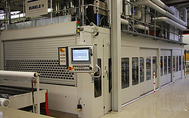 The unique selling points of the Bürkle press which have counted for Bürstner in the contract award are to be found in the achieved product quality. The surface quality after the pressing process, the absolute parallelism of the internal and external wall parts in the sandwich up to the length of 9 m, the optically decisive flatness of the outer face and high cleanliness standards – e.g., via locking gates at the press inlet and outlet – have strongly convinced the investor.