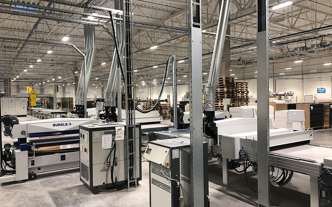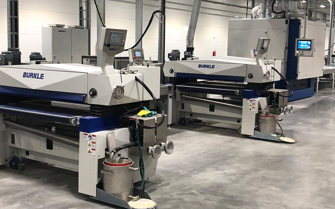 Vilnius Baldai has been an Acustomer of Bürkle for many years. For more than 20 years, both companies have been closely connected with each other, also through the local representation of the Freudenstadt plant manufacturer Lintera. The close relationship started in 2004, when Bürkle designed and built two large printing and coating lines for Vilnius Baldai. In the last few years, several individual machines have been purchased and replaced. Vilnius Baldai also owns Bürkle veneer press lines.