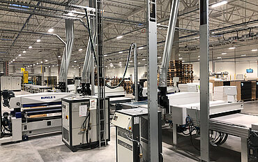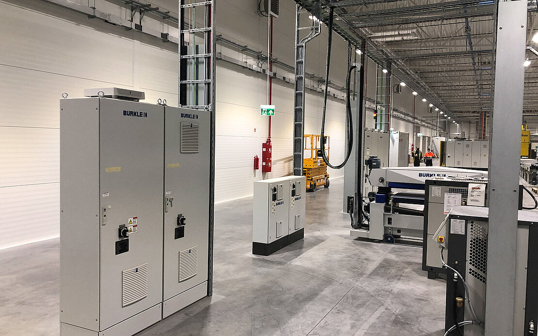 A new production site was opened in the Trakai district last year, the centrepiece of which is an 87-metre-long production line for the coating of furniture parts by Freudenstädter Robert Bürkle GmbH, which is presented in detail below. Furniture parts made of MDF and chipboard are coated with a single lacquer on the system installed last year with an investment volume in the low 7-digit range. Designed as a roller coating line, it is fully equipped with UV LED drying (for curing) and features the latest technologies for energy efficiency. Compared to conventional coating lines, this results in very decisive advantages in terms of environmental protection and Green Deal, which Ikea insisted on implementing as a leading company in terms of sustainability. Designed for 3-shift operation, the output of the line reaches a production speed of 50 m per minute, with feed rates of 15 - 70 m/min and a line width of 1 300 mm. The coating line was completely realised and delivered by Bürkle, so all components were projected, designed and produced in Freudenstadt before the installation on site in Lithuania took place from spring 2020. Of course, as everywhere, activities were affected by the Corona pandemic, with the usual difficulties due to contact restrictions and quarantine requirements, which delayed the installation but did not jeopardise the project in any way.