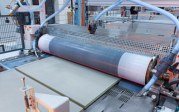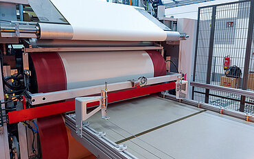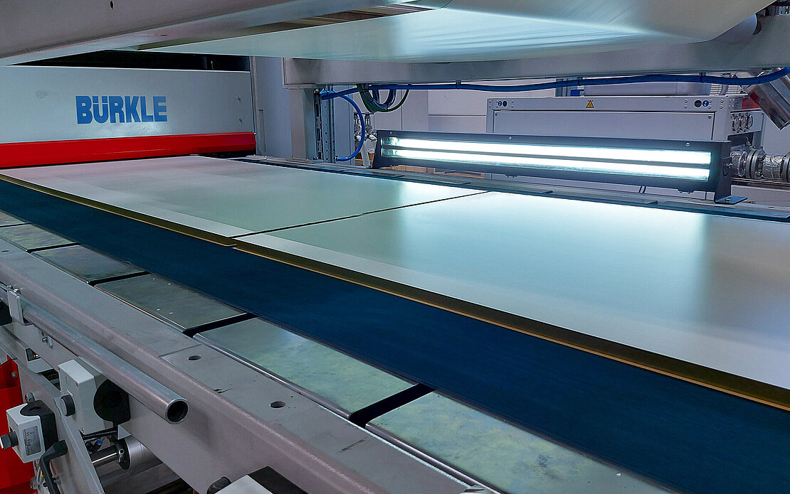 The FFA 1300 thermal laminating system has been running smoothly for around a year. Twelve employees operate the system on a rotating basis. It took about four weeks to train the permanent staff in the technology. For the most part, PRÜM was able to draw on experience from existing processes for the specific product. "In combination with the specialists from BÜRKLE, the training was very efficient," says Richard Eckertz. The plant then carried out further training for the three-shift operation on its own.