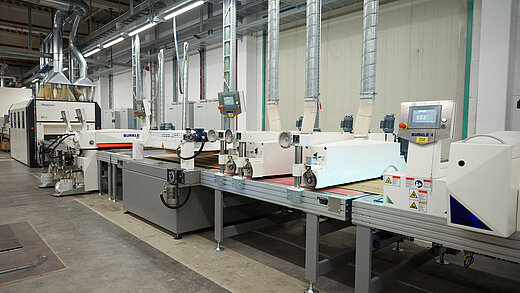 With the KA roller coating system, we showcase a compact and powerful solution for coating furniture parts, doors and interior components. A precise application and smoothing system ensures an even coating result, while the integrated UV dryer enables fast and efficient curing of the coating. This creates a continuous and economical process for producing high-quality surfaces.